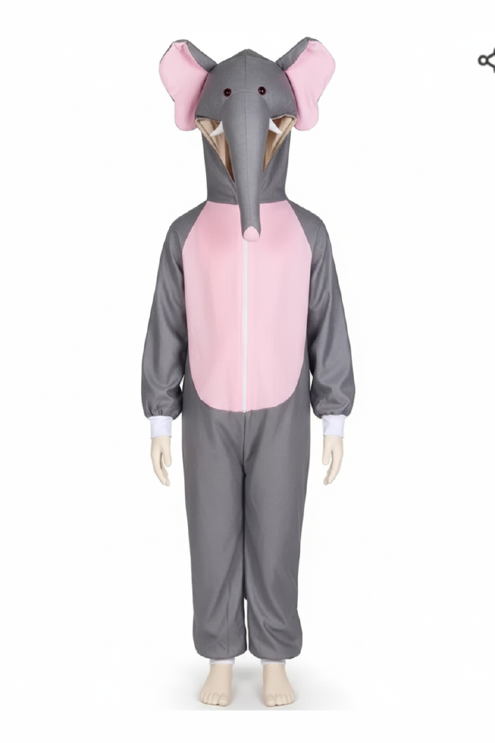 Get ready to trumpet! This soft and charming Elephant Costume is the perfect choice for school animal days, stage performances, and cultural events. Featuring a snug hooded head with floppy pink ears and a playful long trunk.